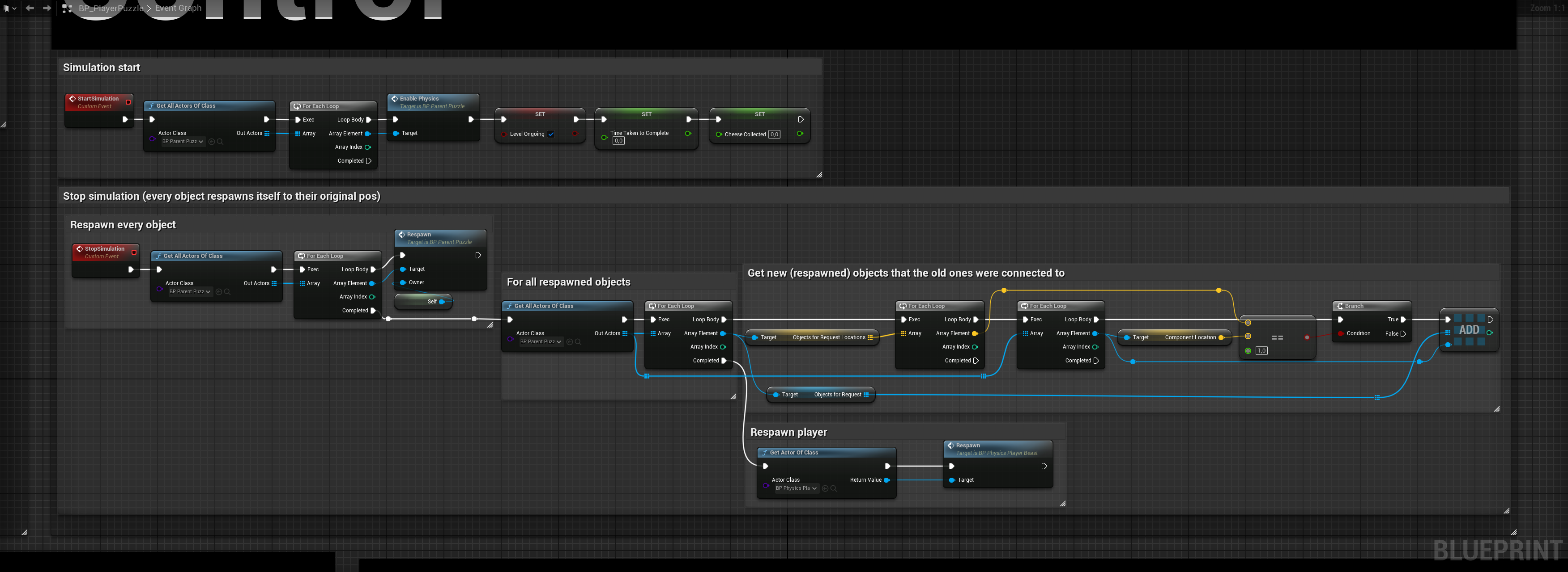 The puzzles work by utilising inheritance between components and controlling when the physics simulation starts and stops.